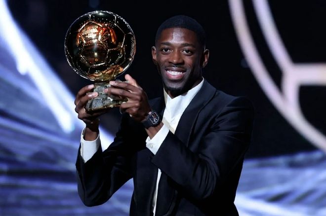 今年男子奖项最没悬念却最戳人的,当属登贝莱捧起年度最佳男足球员奖杯。这要是放在三年前,估计没人敢信。